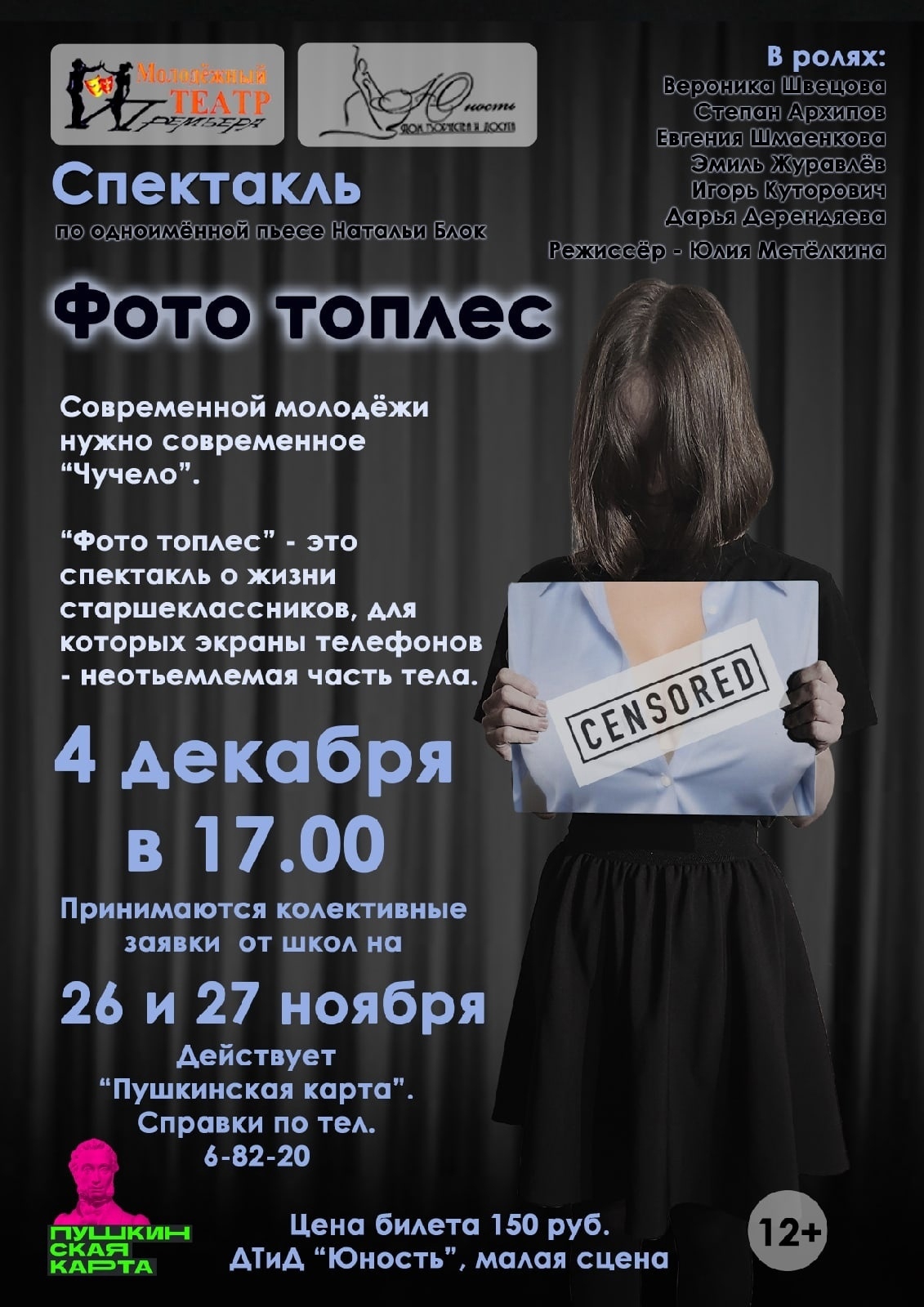 «Фото топлес» - это спектакль о жизни старшеклассников, для которых экраны телефонов - неотъемлемая часть тела.