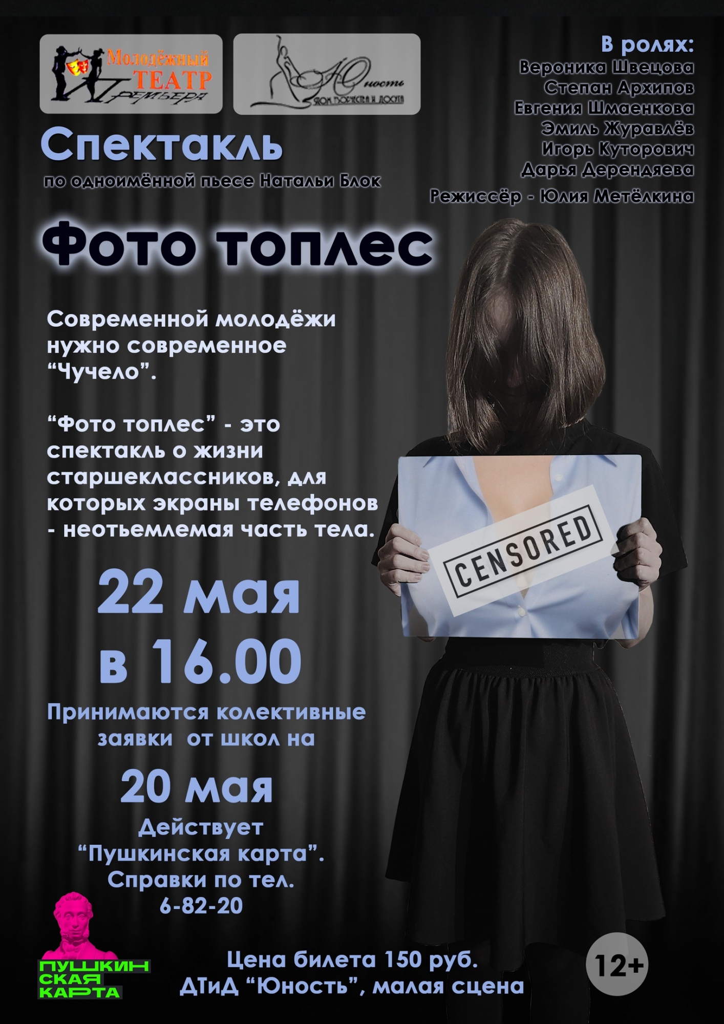 Современной молодёжи нужно современное «Чучело». «Фото топлес» - это спектакль о жизни старшеклассников, для которых экраны телефонов - неотъемлемая часть тела.