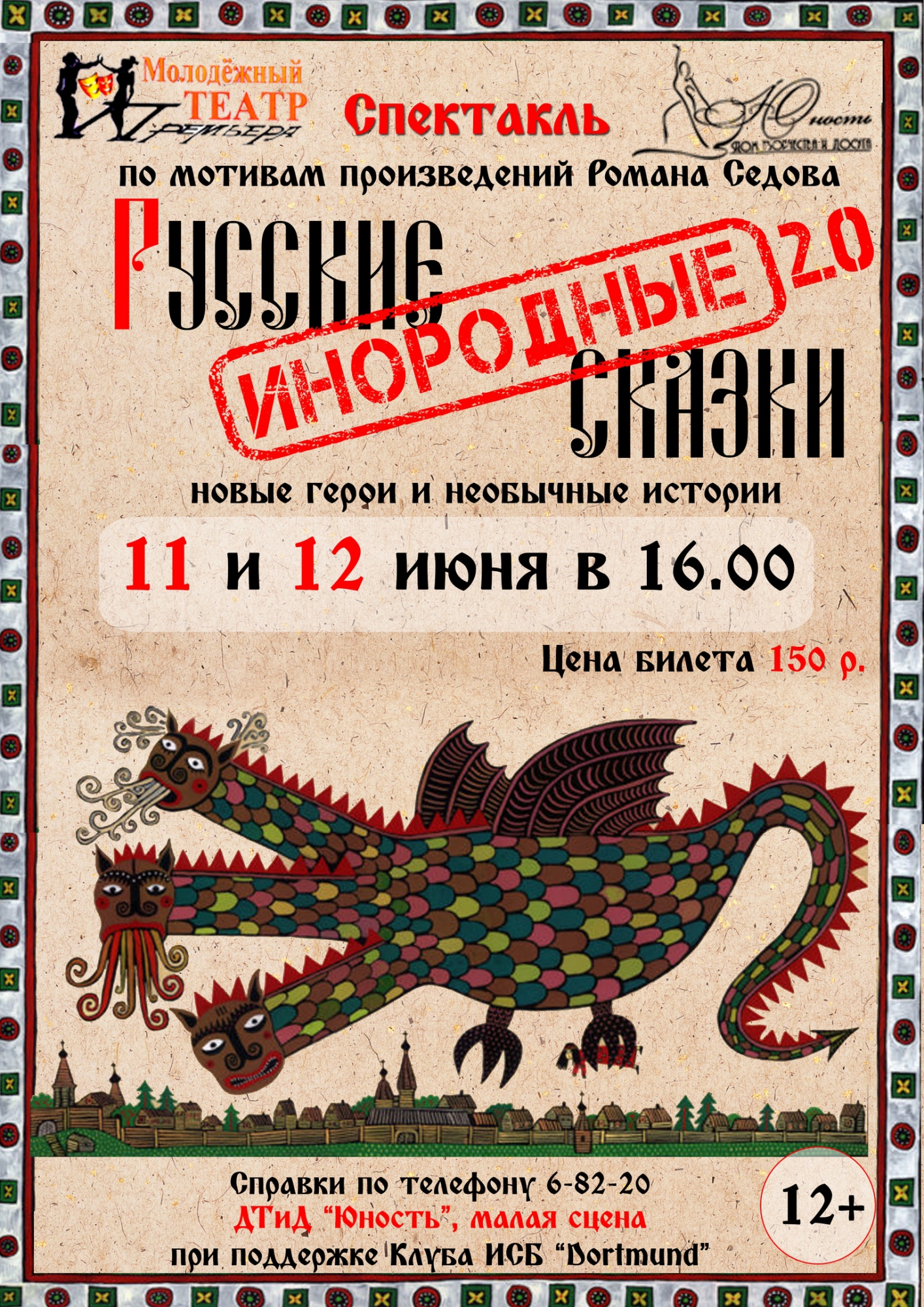 👉🏻 Народный молодежный театр «Премьера» приглашает на спектакль по мотивам произведений Р.Седова «Русские инородные сказки»