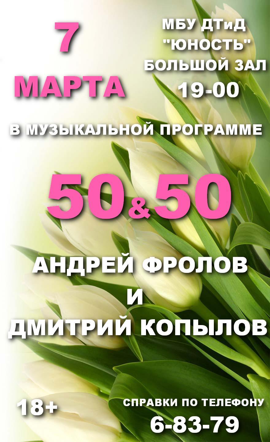Главная / Новости / 7 марта - музыкальная программа "50 / 50"
