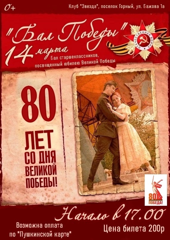 Клуб «Звезда» приглашает на «БАЛ ПОБЕДЫ». Ссылка на приобретение билета по «Пушкинской карте»: