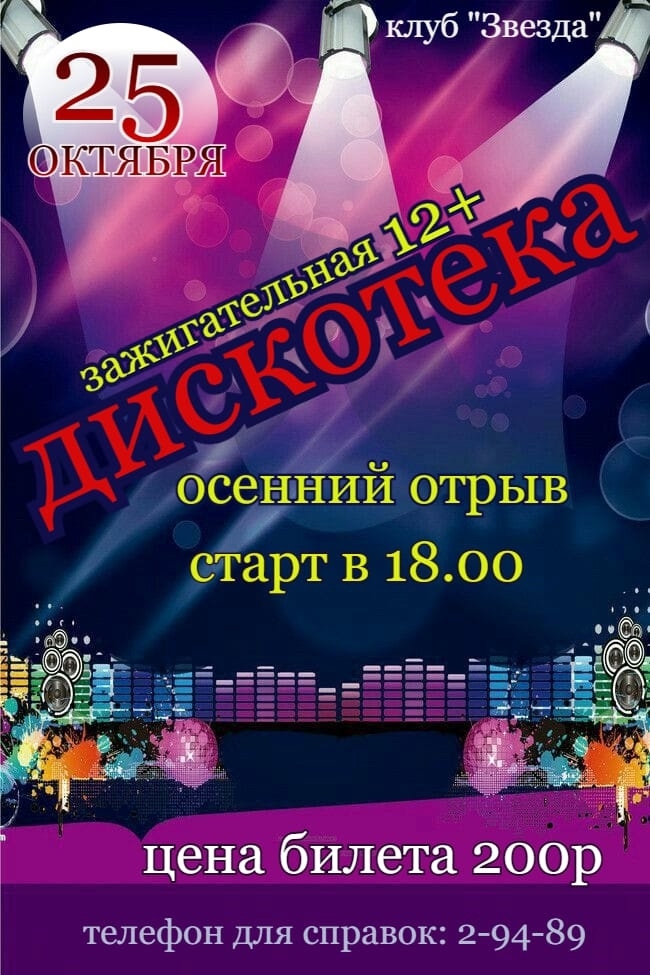 Наша дискотека – это отличная возможность для детей и подростков весело провести время, познакомиться с новыми друзьями и оторваться под любимые хиты. Приходите сами и приводите друзей! Вечер обещает быть насыщенным и запоминающимся!