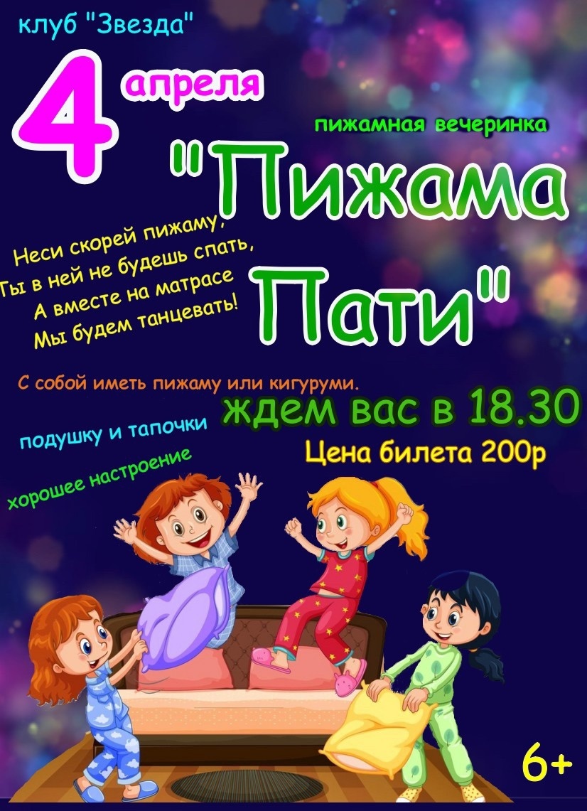 Клуб «Звезда» ждет всех желающих на ПИЖАМНОЙ ВЕЧЕРИНКЕ!