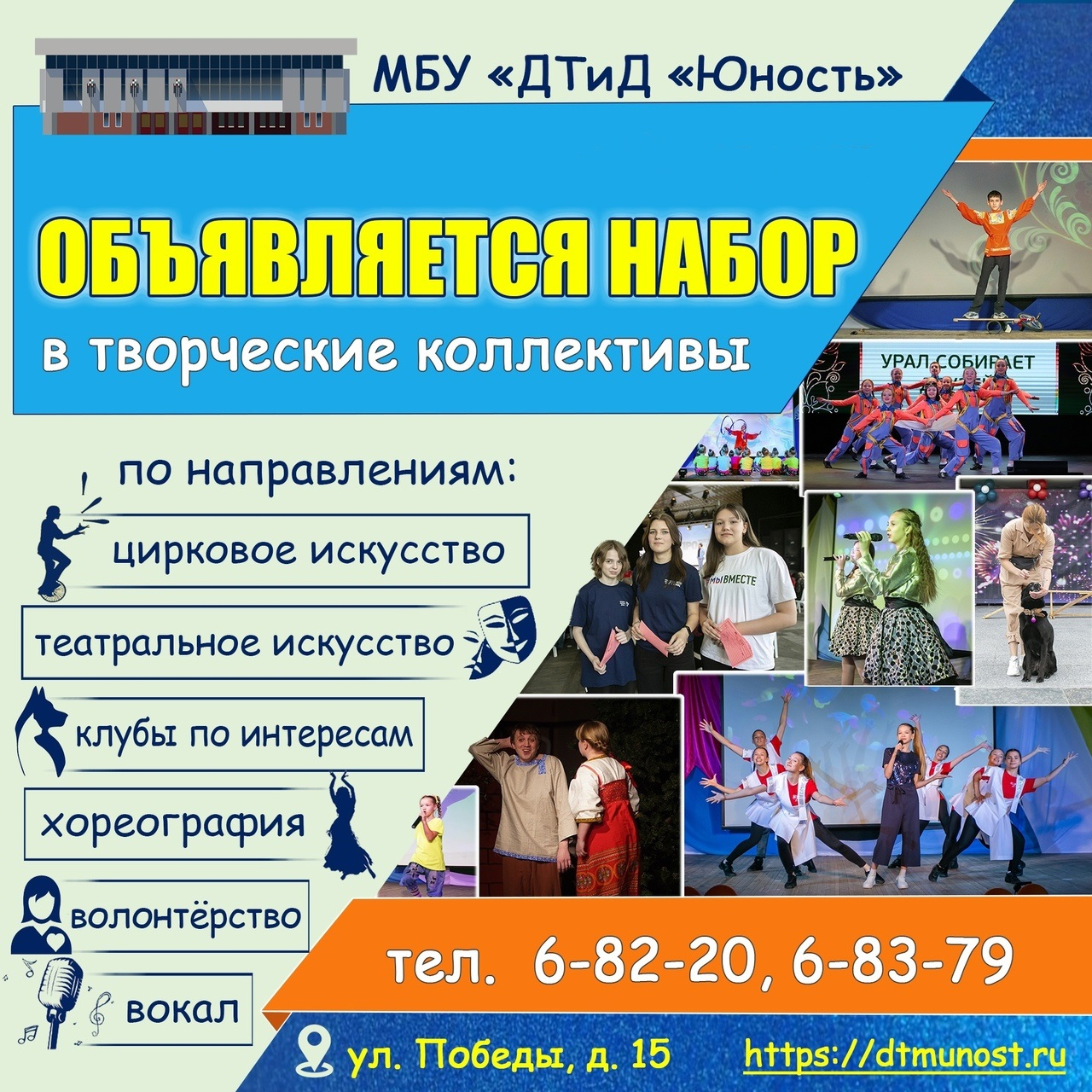 ОБЪЯВЛЯЕТСЯ НАБОР В ТВОРЧЕСКИЕ КОЛЛЕКТИВЫ ДТиД «ЮНОСТЬ»