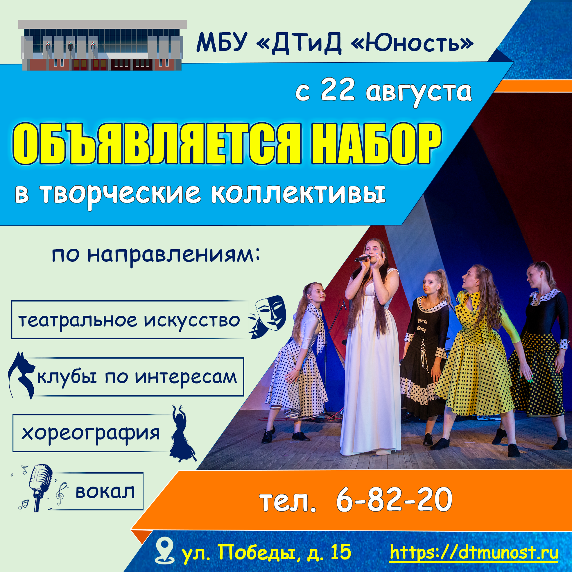 ОБЪЯВЛЯЕТСЯ НАБОР В ТВОРЧЕСКИЕ КОЛЛЕКТИВЫ ДТиД «ЮНОСТЬ»
