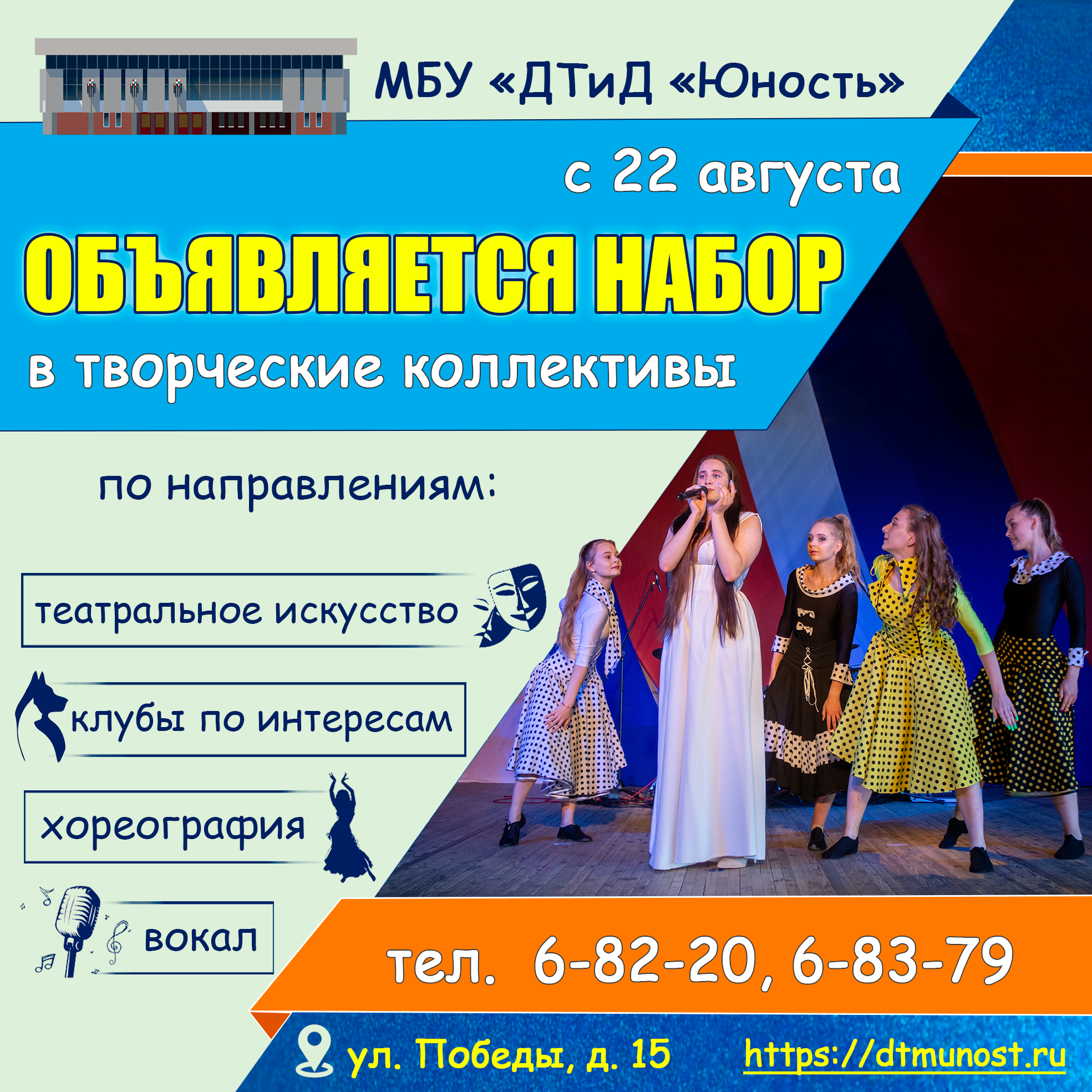 ОБЪЯВЛЯЕТСЯ НАБОР В ТВОРЧЕСКИЕ КОЛЛЕКТИВЫ ДТиД «ЮНОСТЬ»