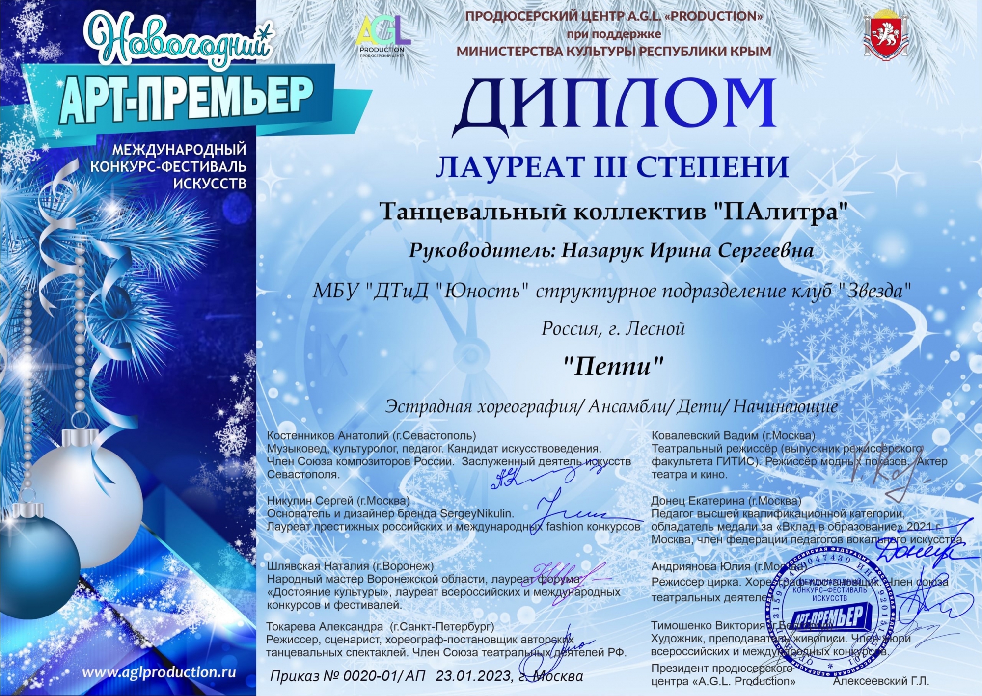 с участием в Международном конкурсе-фестивале искусств «Арт -Премьер»
