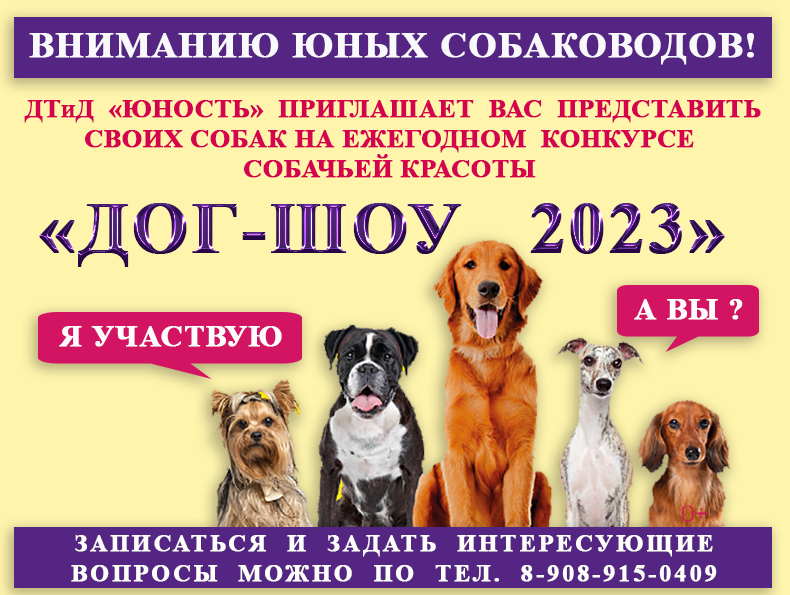 ПРИГЛАШАЕМ ПРИНЯТЬ УЧАСТИЕ в Ежегодном Городском конкурсе собачьей красоты «ДОГ — ШОУ 2023», который пройдет 26 марта в 14:00
