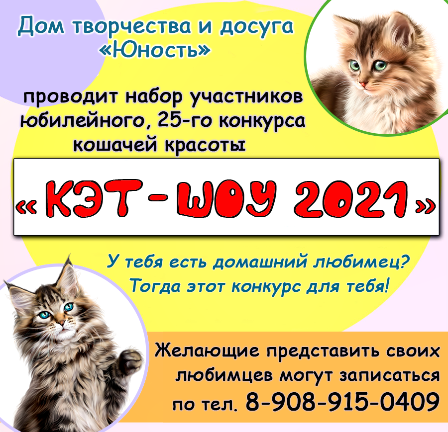 Приглашаем принять участие в ежегодном конкурсе кошачьей красоты "КЭТ-ШОУ 2021"