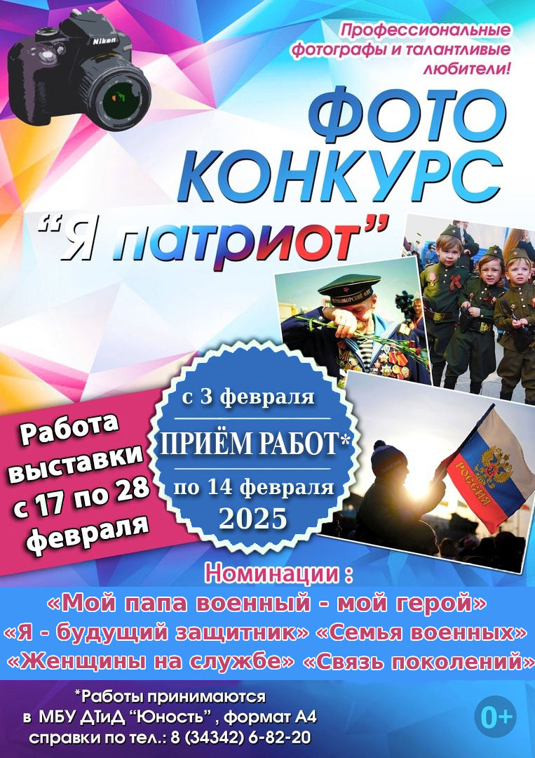 В преддверии Дня защитника Дом творчества и досуга «Юность» объявляет о начале традиционного фотоконкурса «Я патриот». Принять участие приглашаются как профессиональные фотографы, так и талантливые любители!