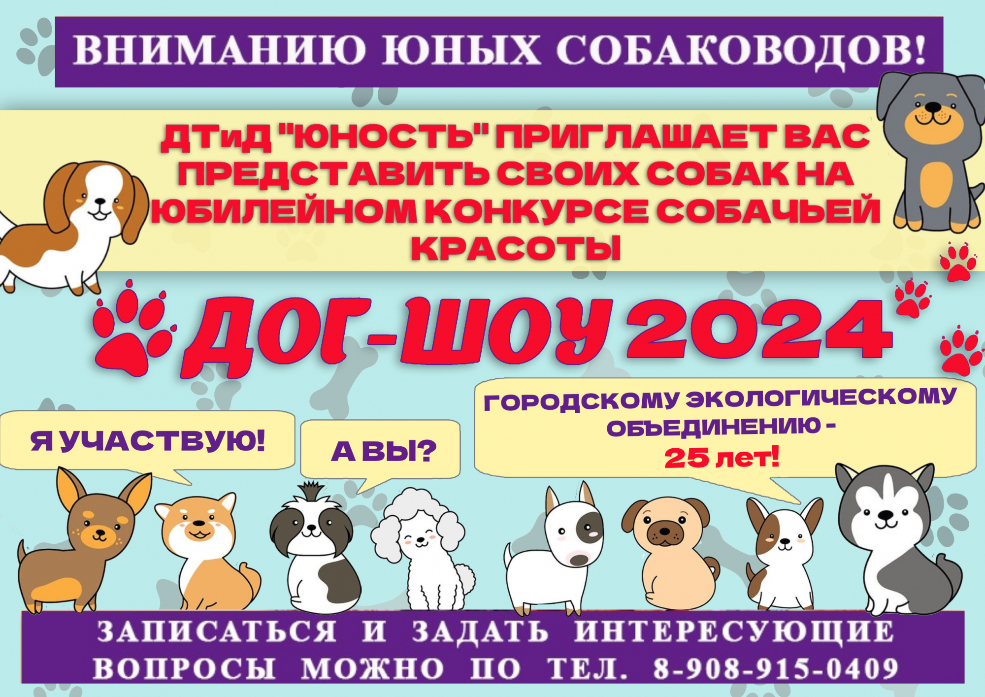 ПРИГЛАШАЕМ ПРИНЯТЬ УЧАСТИЕ в Юбилейном 25-ом Городском конкурсе собачьей красоты «ДОГ — ШОУ 2024»