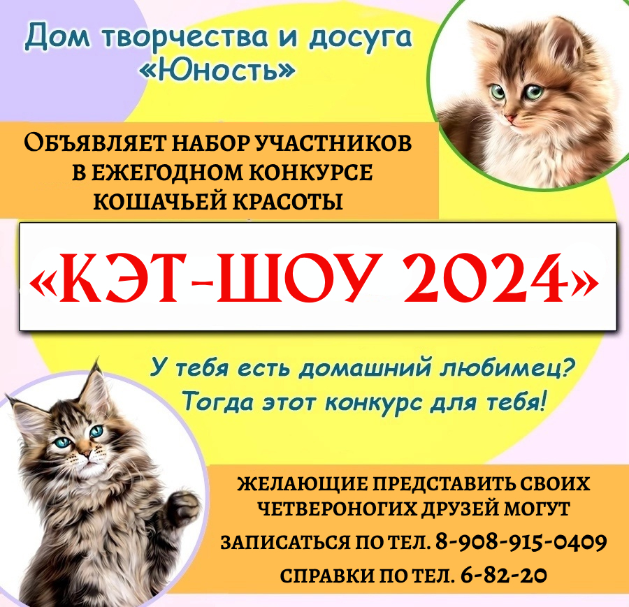 Приглашаем ребят принять участие в Ежегодном конкурсе кошачьей красоты «КЭТ-ШОУ 2024»
