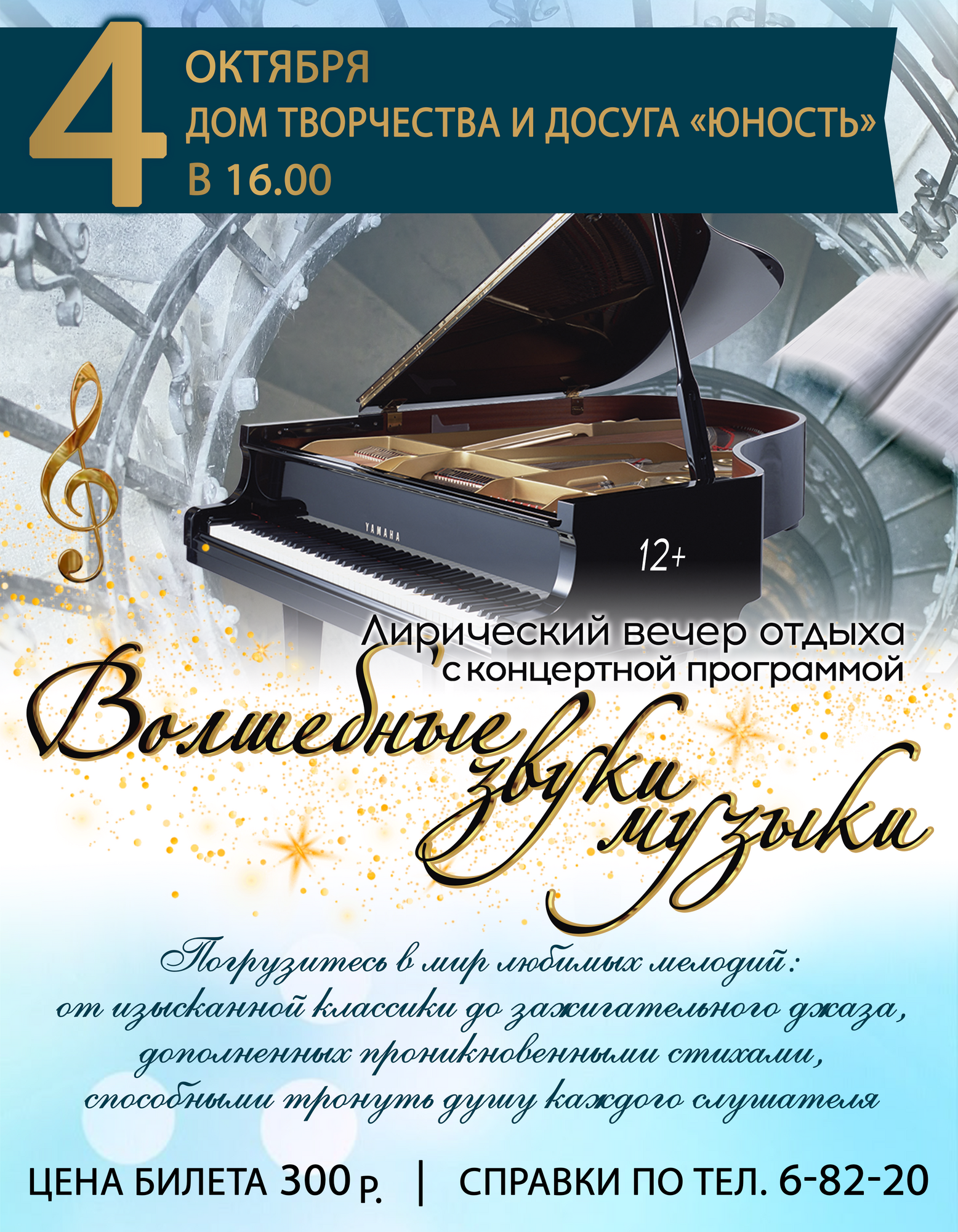 ПРИГЛАШАЕМ Вас на запоминающийся ЛИРИЧЕСКИЙ ВЕЧЕР «ВОЛШЕБНЫЕ ЗВУКИ МУЗЫКИ»!