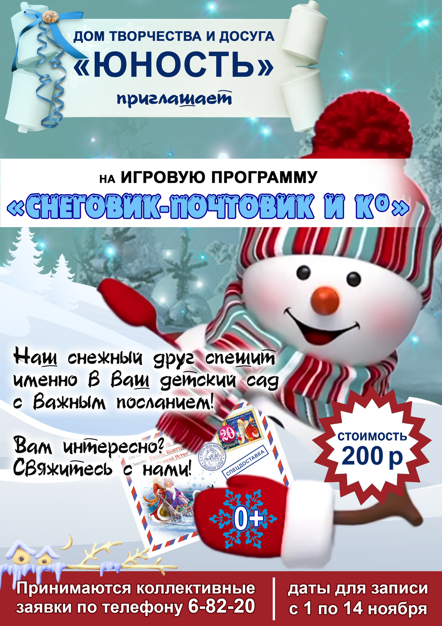Приглашаем воспитанников детских садов г. Лесной погрузиться в атмосферу волшебства и радости вместе с нашим старым добрым другом Снеговиком-почтовиком. Этот замечательный персонаж принесёт в ваш детский сад настоящее зимнее чудо!