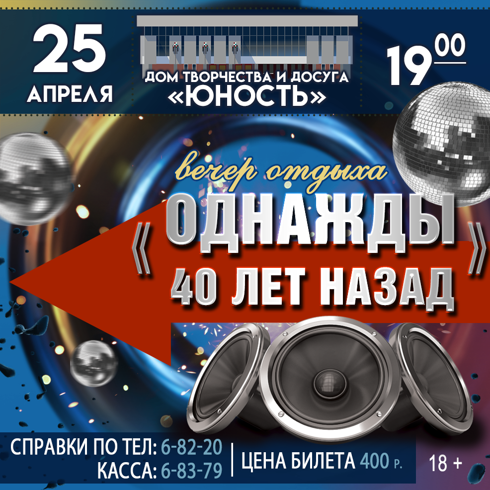 25 апреля в 19:00 приглашаем всех желающих на вечер отдыха «ОДНАЖДЫ 40 ЛЕТ НАЗАД»