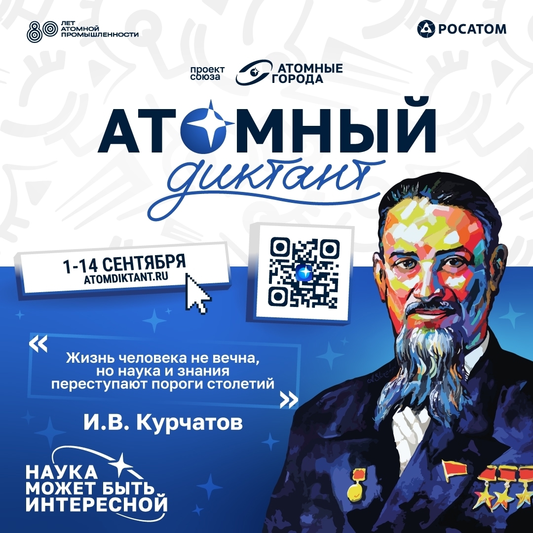 ✍ С 1 по 14 сентября на сайте atomdiktant.ru пройдет пятый «Атомный диктант». Принять участие в «Атомном диктанте» могут все желающие!