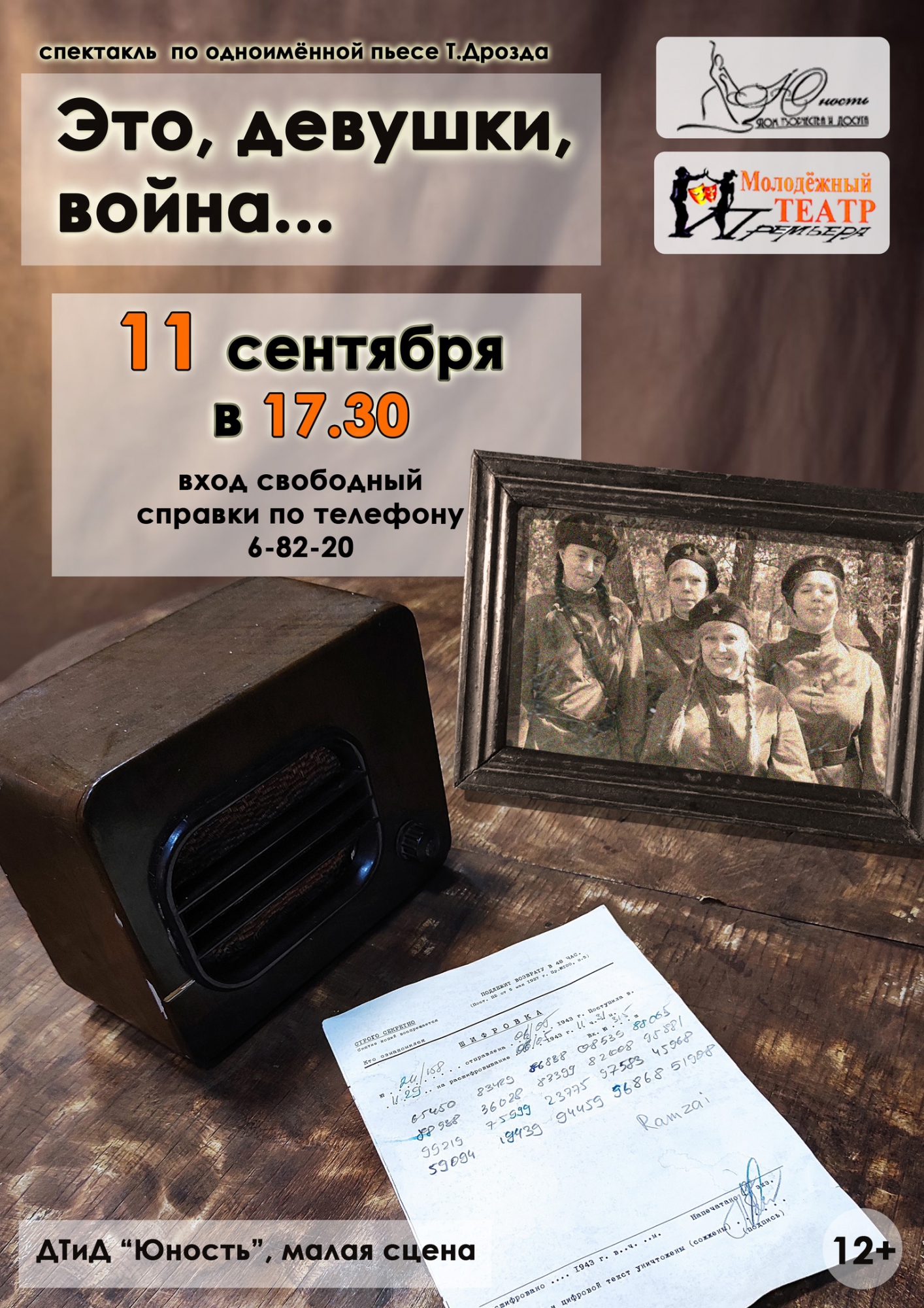 Молодёжный театр "Премьера" присоединяется ко Всероссийской акции "Культурная суббота" и открывает новый творческий сезон показом спектакля "Это, девушки, война..."