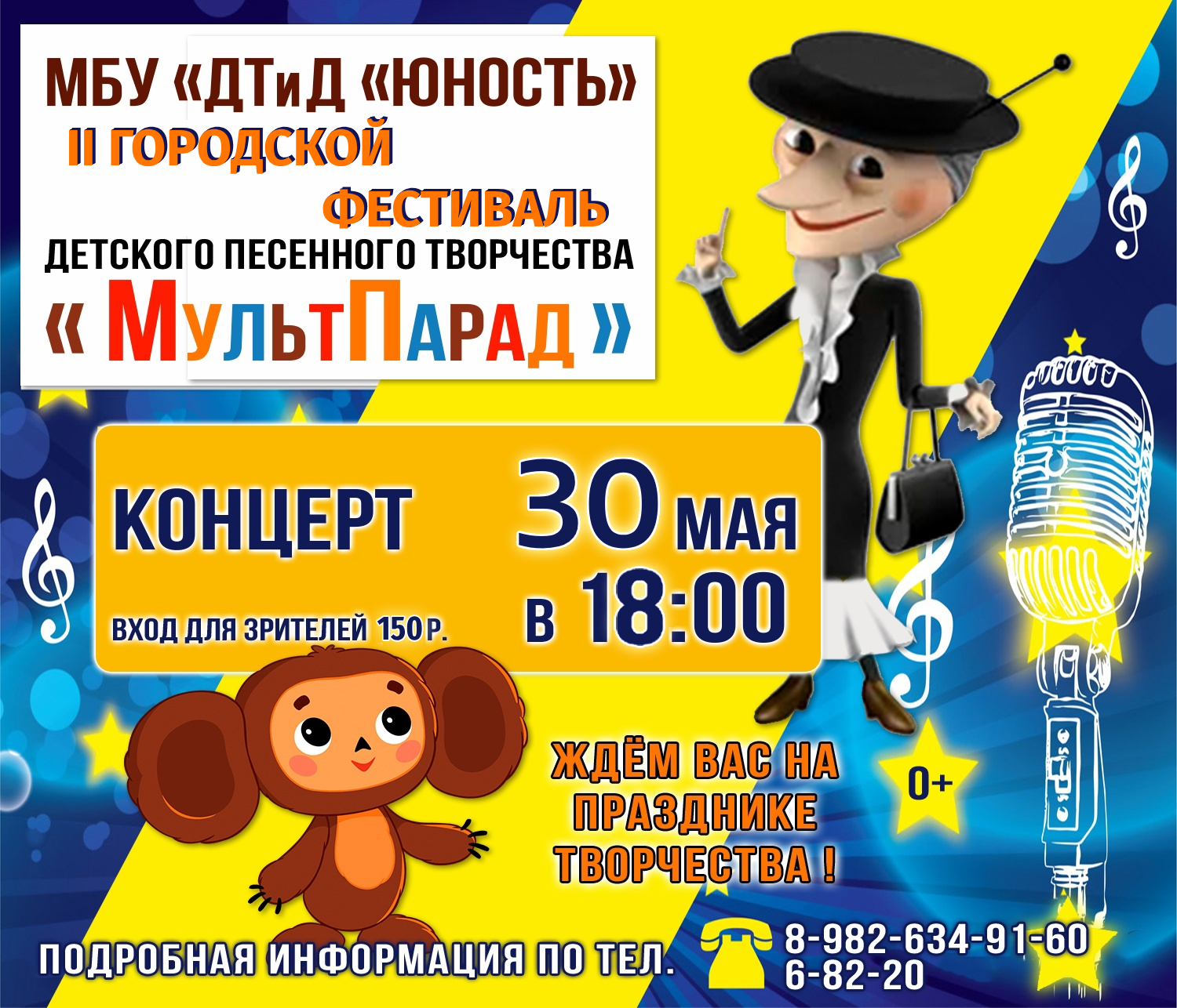 В большом зале ДТиД «Юность» пройдет 🎤 II ГОРОДСКОЙ ФЕСТИВАЛЬ детского песенного творчества «МУЛЬТПАРАД!»