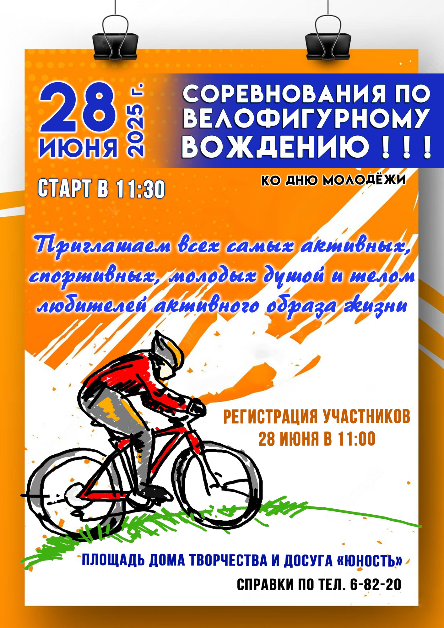 🔥 Уже 28 июня в 11:30 на площади перед Домом творчества и досуга «Юность» стартует наше грандиозное СОРЕВНОВАНИЕ ПО ВЕЛОФИГУРНОМУ ВОЖДЕНИЮ. Мы ждем всех желающих — велосипедистов и самокатчиков любого уровня подготовки! 😊✨