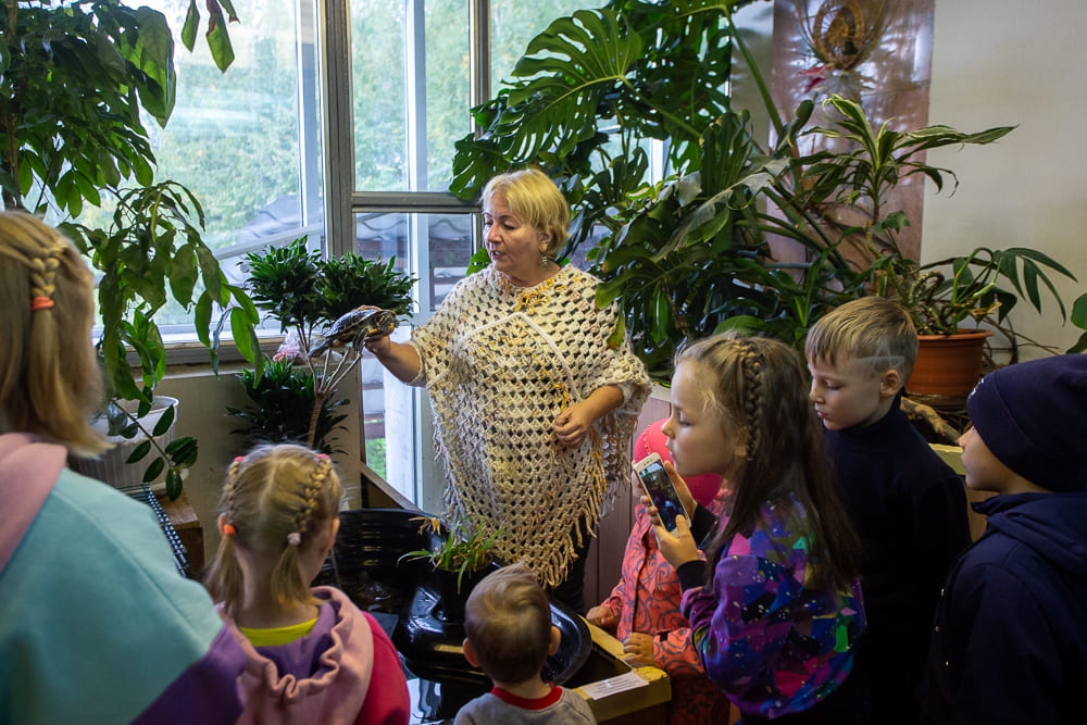 Посетители смогли побывать на обширной экскурсии по саду, где произрастают сотни видов и сортов комнатных растений. Взрослые и дети поближе познакомились с обитателями живого уголка: ёжиком Чих-пыхом 🦔, крыской Лариской 🐁, песчанками, белками дегу и многими другими интересными представителями животного мира 🐢. В большом зале прошли мастер-классы по дрессировке и ринговой подготовке собак 🐕.