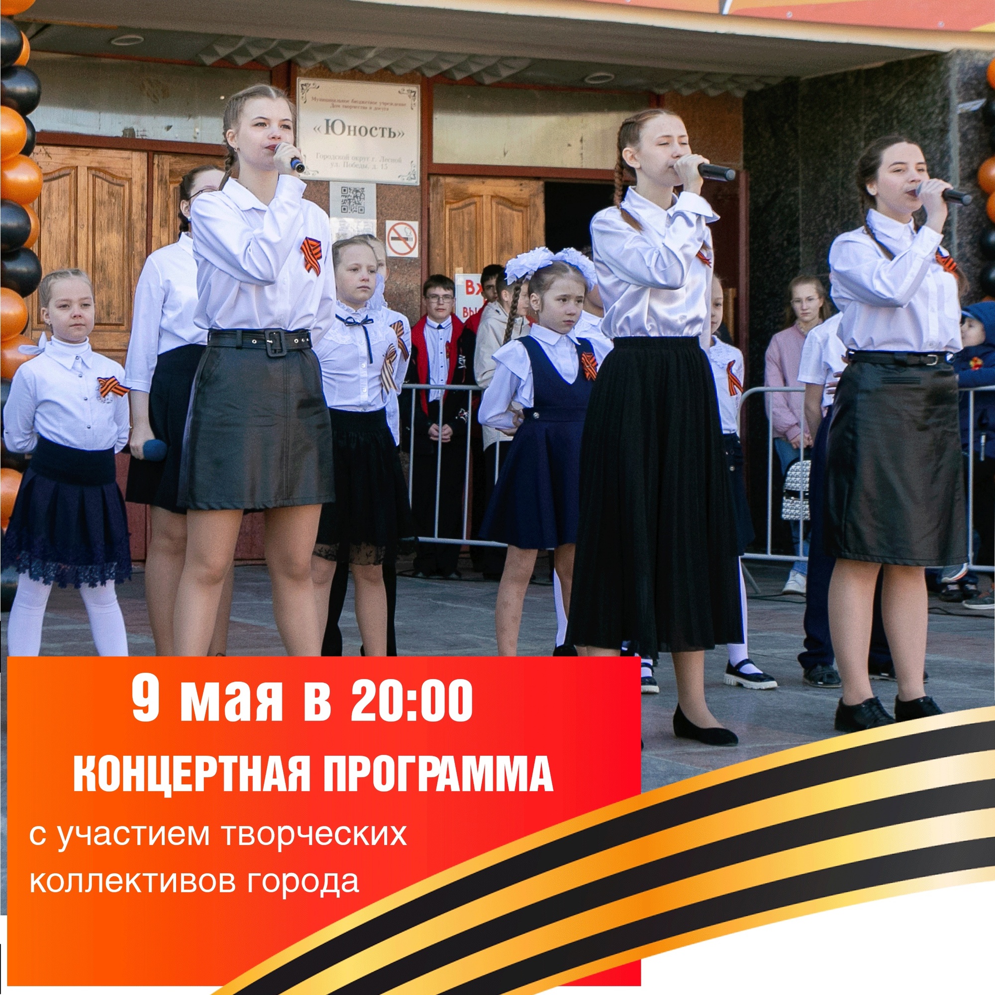 ВНИМАНИЕ! ВЕЧЕРНИЕ МЕРОПРИЯТИЯ, ПОСВЯЩЕННЫЕ 80-ЛЕТИЮ ВЕЛИКОЙ ПОБЕДЫ, СОСТОЯТСЯ В БОЛЬШОМ ЗАЛЕ «ДТиД «ЮНОСТЬ»!