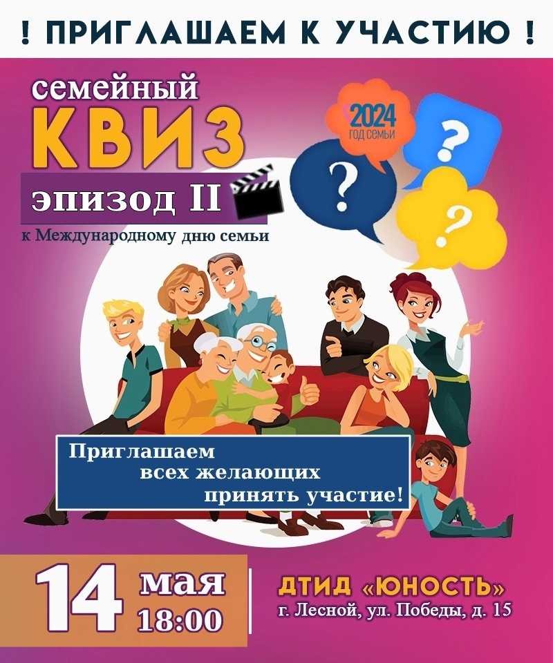 Прийти всей семьей на квиз 14 мая в 18.00