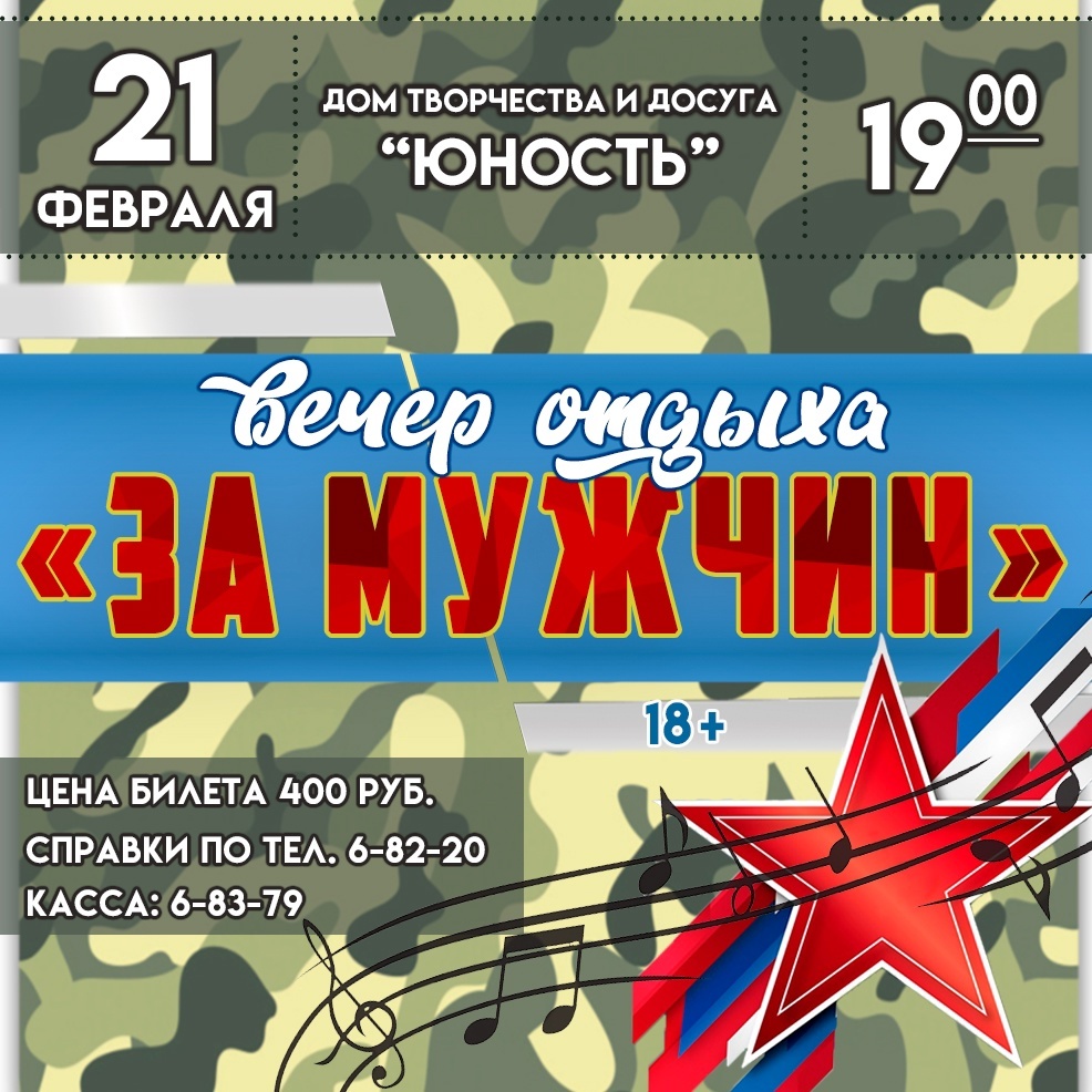 21 февраля в 19:00 приглашаем всех желающих на вечер отдыха «За мужчин»